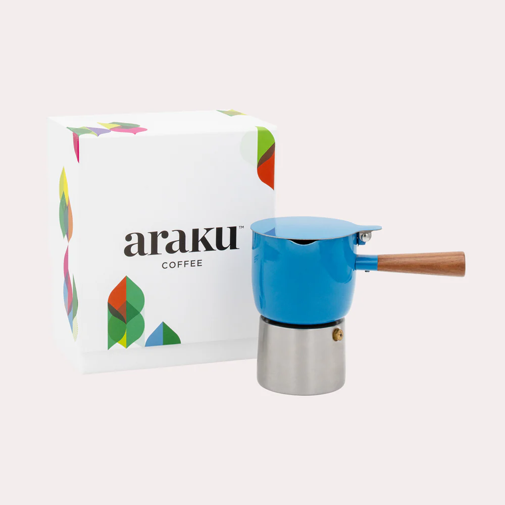Les designers norvégiens Anderssen & Voll ont créé avec passion cette cafetière italienne design en collaboration exclusive avec Araku. Inspirée des théières japonaises traditionnelles et de la biodiversité d'Araku, la cafetière à l'italienne Moka Araku bleue allie esthétique intemporelle et fonctionnalité moderne. Fabriquée avec des matériaux de haute qualité, cette machine à café italienne offre une extraction optimale des arômes de votre café de spécialité ARAKU, en quelques minutes seulement. Une alliance parfaite entre le savoir-faire italien et la créativité nordique.